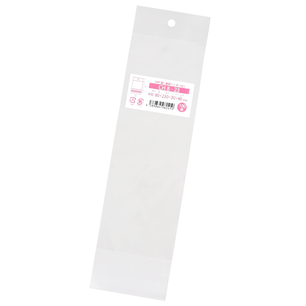 フックに掛けて吊り下げて陳列、展示が可能なヘッダー付(透明)タイプのOPP袋です。材質:OPP・サイズ:厚さ0.03mmx幅80mmx長さ230mm+ヘッダー部分30mm+テープ部分40mm、入数:100枚入x1袋または1000枚(100枚入袋x10セット)。透明ヘッダー(吊り下げ用穴直径8mm)テープ付(帯電防止済)日本製。透明度が高く光沢があるので高級感があり、商品の中身をきれいに見せることができます。テープ付きなのでワンタッチで商品封入が...[詳細を見る]