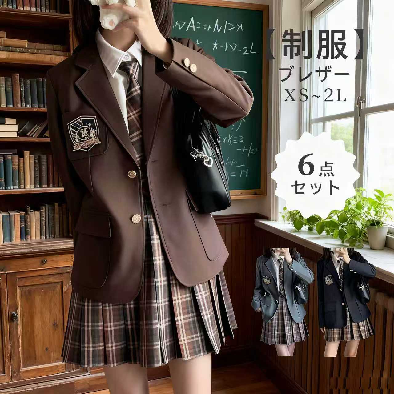 セット内容??.x? ジャケット/長袖シャツ/スカート/バッジ/リボンorネクタイ 「記載のないアクセサリー 小物等は付属しません」 素材??.x? ポリエステル カラー??.x? グレー:Aセット/Bセット/Cセットブラウン:Dセット/Eセットサイズ (cm)??.x? ジャケットSS/着丈68 バスト96 肩幅40 袖丈57S/着丈68 バスト96 肩幅40 袖丈57M/着丈69 バスト100 肩幅41 袖丈58L/着丈70 バスト104 肩幅42 袖丈59LL(XL)/着丈71 バスト108 肩幅43 袖丈...[詳細を見る]