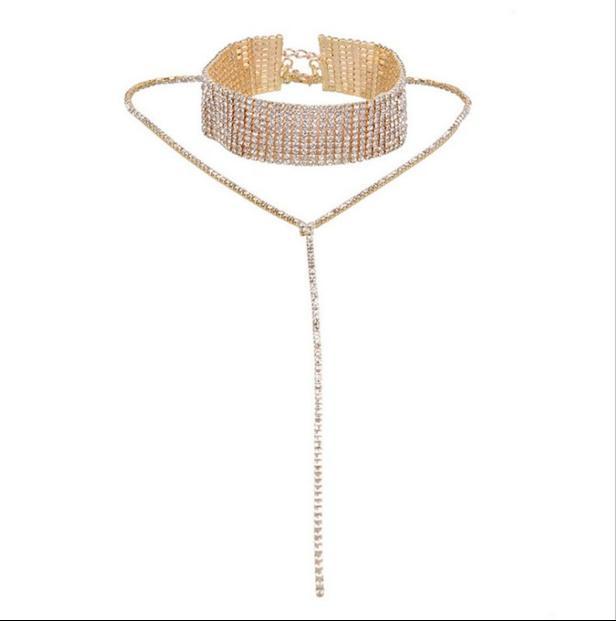 ネックレス レディース おしゃれ 幅広 チョーカー ラインストーン 流れる フリンジ キラキラ 個性 派手 ...