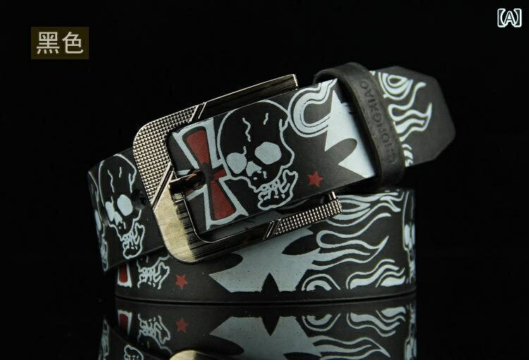 ベルト メンズ 男性用 ライター付き レザーベルト 学生 普段使い パンク ヒップホップ ストリート 個性的 型押し ウエストベルト 幅広 フェイクレザー ブラック[詳細を見る]