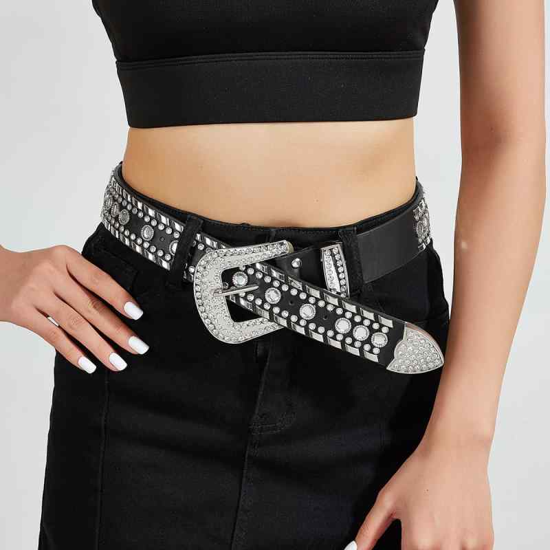 ・主な素材: PUレザー・バックル素材: 合金・留め具: ピンバックル・カラー展開: ブラック、ホワイト、シルバー・幅: 4cm以上・スタイル: 個性的・サイズ: 幅3.8cm、長さ105cm・デザイン: パンク風、スタッズ、ラインストーン[詳細を見る]