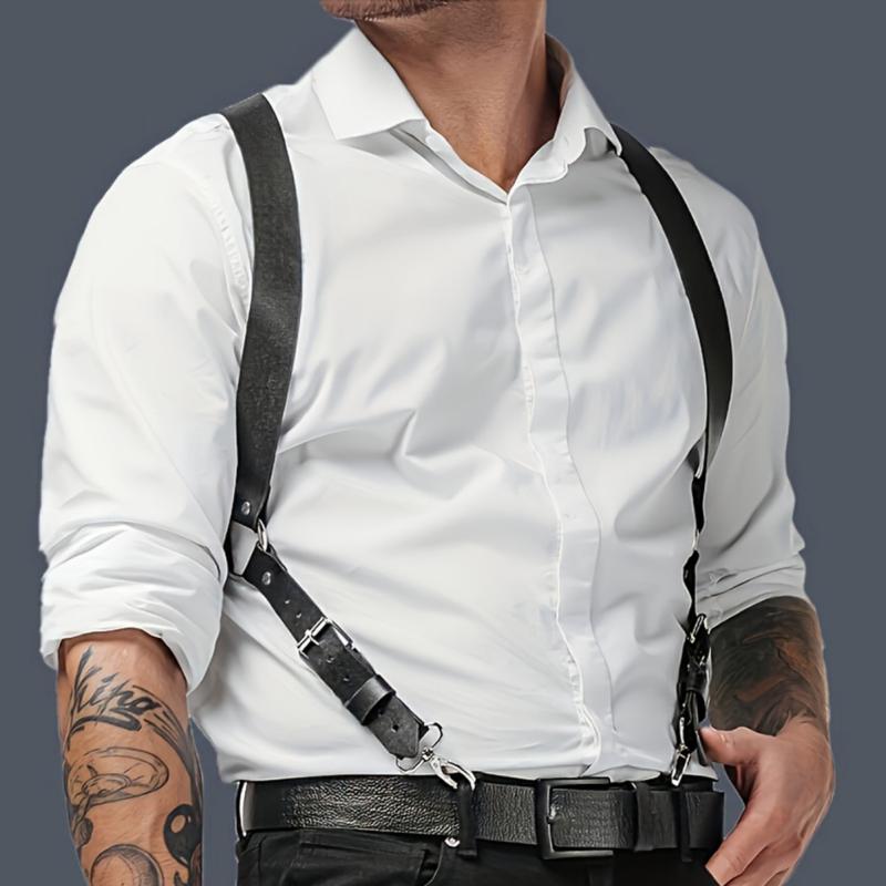スタイリッシュなデザインで、ホルスターのようなメンズ用サスペンダー。ゴム仕様のサスペンダーで、体にしっかりフィットしてくれます。体の後ろでクロスしているので、体の動きにぴったりフィット!クロス部分はフェイクレザーを使用し、色落ちを防止することができます。アジャスターで細かなサイズ調節もできるので、どんなスタイルにも合わせやすいのが魅力。 サイズフリーサイズサイズについての説明フリーサイズ:長さ10...[詳細を見る]