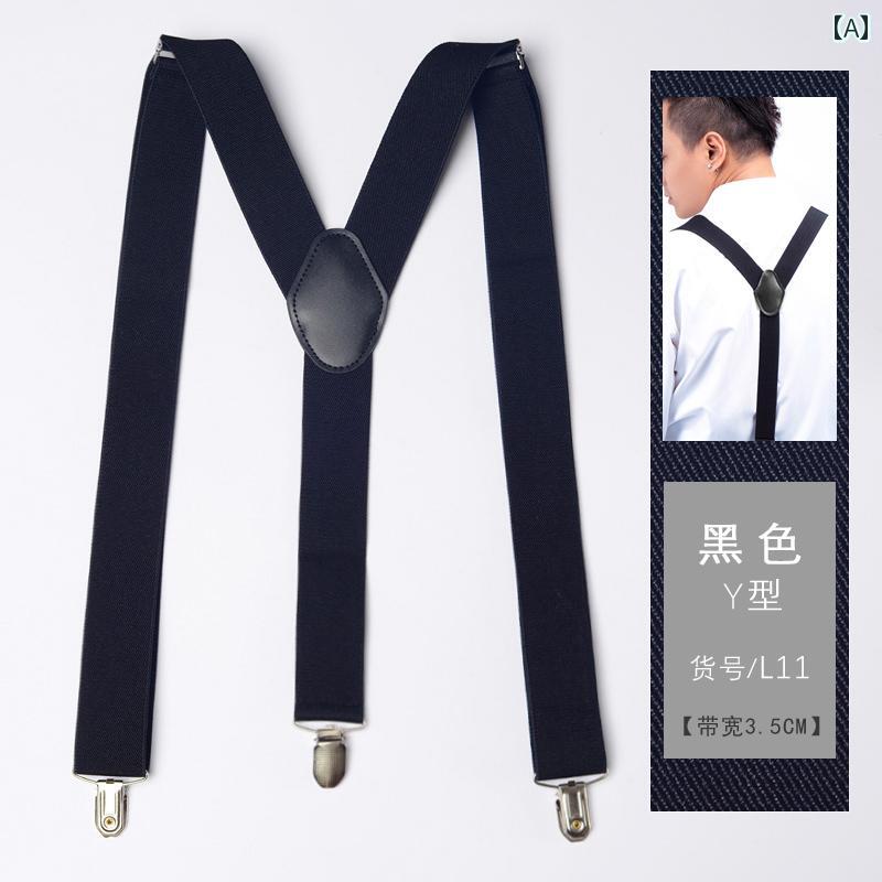 ・素材: ゴム、牛革、金属・製品幅: 3.5cm・クリップ数: 2個・長さ調整: 可能・伸縮性: 強・クロスタイプ: Yes・対象年齢: 大人・対象性別: メンズ・カラー: ブラック[詳細を見る]