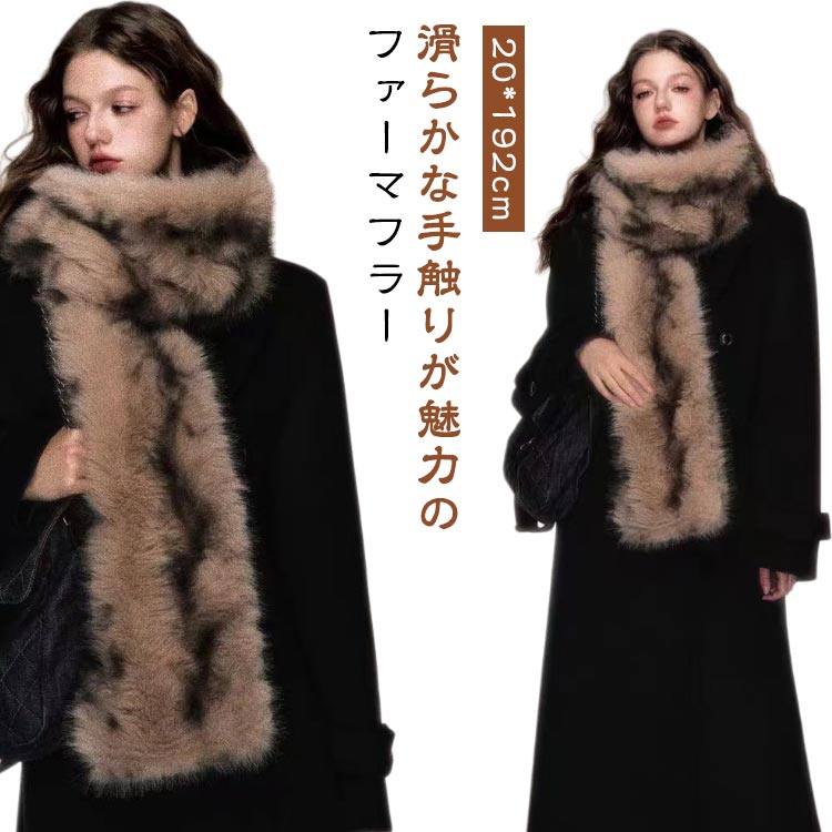 滑らかな手触りが魅力のファーマフラーふわふわなめらかなファーでコーディにぐっと華やかでリッチな雰囲気を与えてくれます。暖かさボリューム抜群!小顔効果も◎大判サイズ、さまざまなアレンジや巻き方が楽しめます♪極上ふわふわ、顔まわり華やか!1秒装着で忙しい朝も暖かい♪ サイズ 20*192cm サイズについての説明 20*192cm ※サイズ表の実寸法は商品によって1-2cm程度の誤差がある場合がございます。 素材 フェイクファ...[詳細を見る]