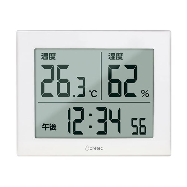 ■商品内容・ 大画面だから遠くからでもハッキリ見やすい! ・ 時計機能付 ・ シンプルに温度、湿度、時計の3点を見やすく配置 ・ 壁掛け用フック穴、立てかけスタンド付 ・ MAX(最高数値)・MIN(最低数値)を確認できる ・ 大画面で見やすい液晶サイズ(幅170×縦128mm)■商品スペック■表示温度範囲:-9.9〜50.0℃■表示湿度範囲:10〜99%■液晶サイズ:約170×130mm■時計精度:月差±30秒以内■温度精度: 0.0〜40.0℃:±1.0℃/その他の範囲:±2.0℃■...[詳細を見る]