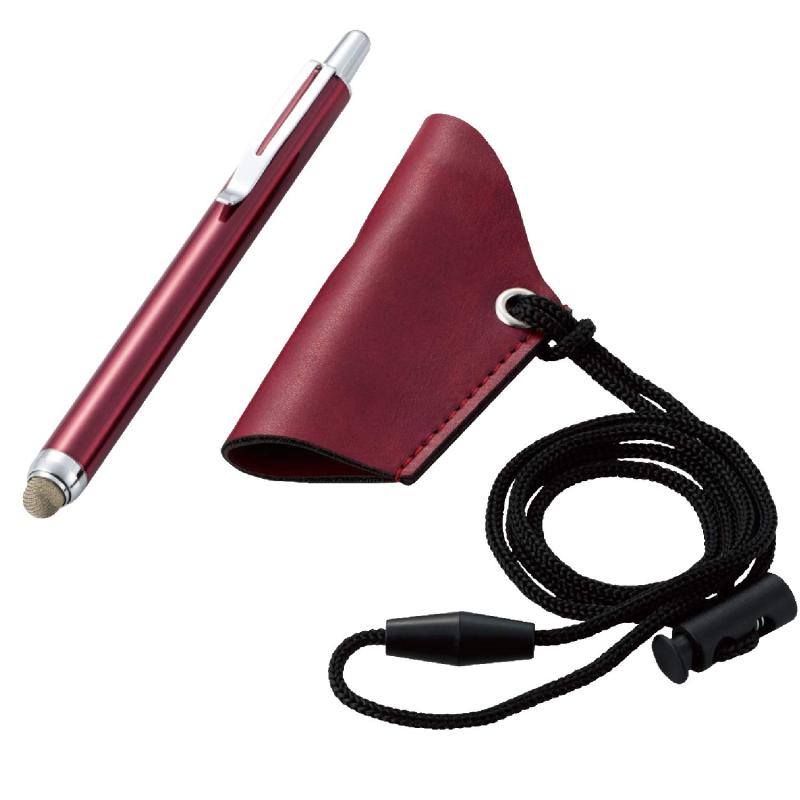 エレコム タッチペン ストラップ付 ノック式 【スマホ/タブレット用】 導電繊維タイプ レッド P-MTTPF01RD