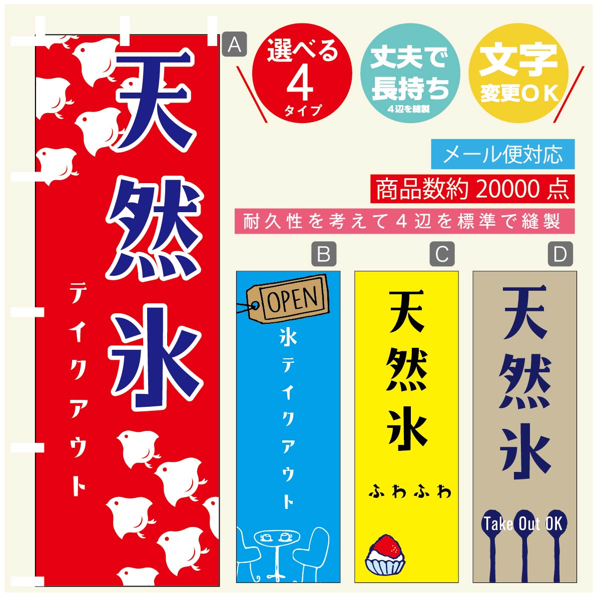 ◆◆生地◆◆ テトロンポンジ(ポリエステル100%) ☆屋内外ディスプレイに対応 ☆四辺縫製加工で補強*ご使用の環境により耐久期間は異なります。 ☆裏抜けクッキリ。裏からもデザインがはっきり見えます。 ◆◆サイズ◆◆ 60cm×180cm ◆◆発送◆◆ ご注文を受けてから製作に入るため、ご注文確定から日祝を除く7〜10日以内の出荷となります。 イベントなどで使用日がお決まりの方は、お手数ですが弊社までご連絡ください。 ◆◆送料◆◆ ★★★お好...[詳細を見る]