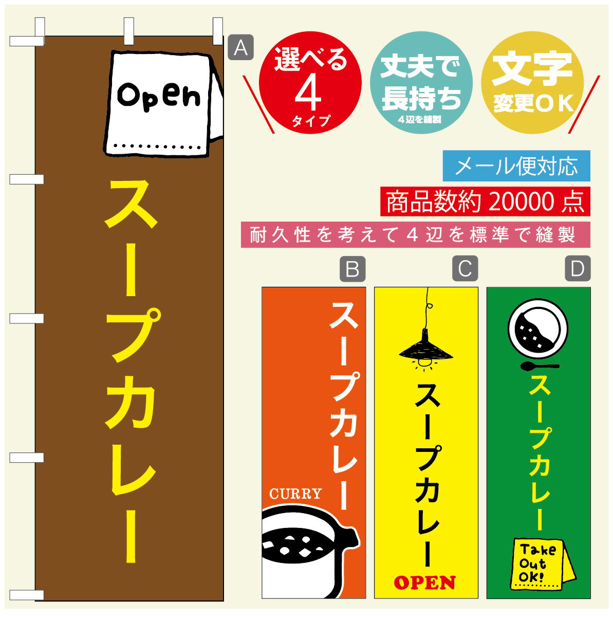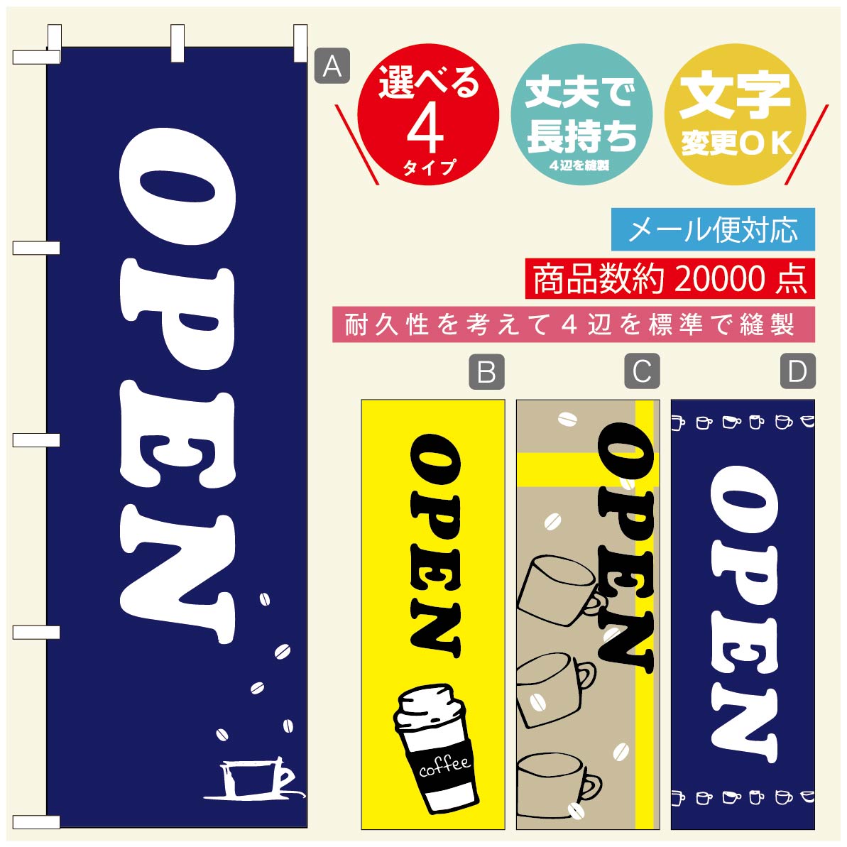 ◆◆生地◆◆テトロンポンジ(ポリエステル100%)☆屋内外ディスプレイに対応☆四辺縫製加工で補強*ご使用の環境により耐久期間は異なります。☆裏抜けクッキリ。裏からもデザインがはっきり見えます。◆◆サイズ◆◆60cm×180cm◆◆発送◆◆ご注文を受けてから製作に入るため、ご注文確定から日祝を除く7〜10日以内の出荷となります。イベントなどで使用日がお決まりの方は、お手数ですが弊社までご連絡ください。◆◆送料◆◆★★★お好きなのぼり...[詳細を見る]