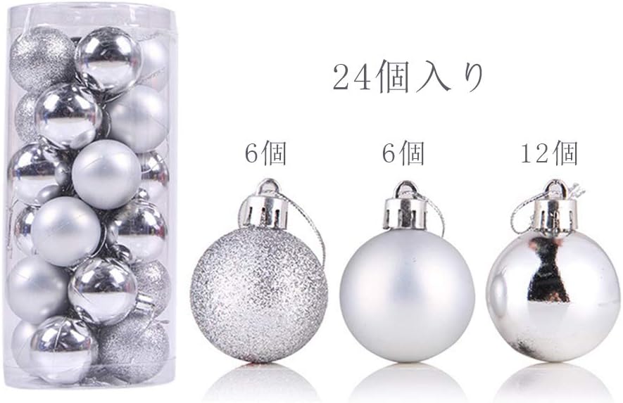 商品サイズ:直径4cm 直径5cm 材質:プラスチック クリスマスツリーの飾りでバリエーションが豊富なオーナメントの24個セットです。 樹脂製なのでとっても軽量&丈夫!小さなお子さんが扱っても割れることなく安心です。[詳細を見る]