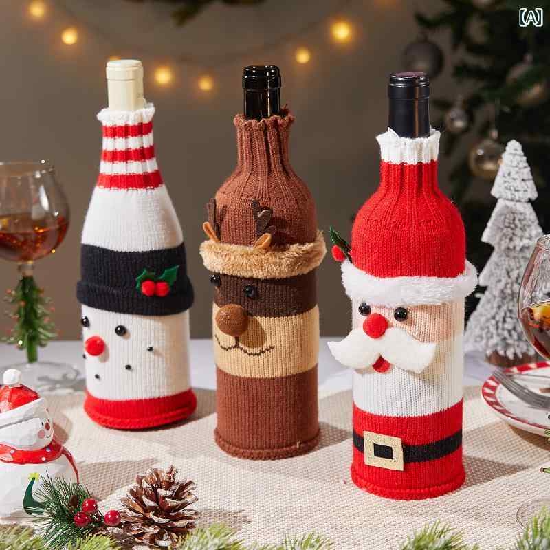 クリスマス 装飾 ワインボトル セット 老人 ツリー 赤 ワイン シャンパン ホテル レストラン シーン レイアウト.可愛いカラフルカラー.オシャレデザインモデル: 555210色:ニットワインボトルカバーセット(A-31.A-32).クリスマスツリーワインボトルカバーセット(H-32チェック柄.ストライプ柄).セット(H-13.H-14. H-15)Aセット(H-29.H-30.H-31) 高齢者風ニット 雪だるま風ニット ヘラジカ風ニット A-31 Aスタイル A-32 B...[詳細を見る]