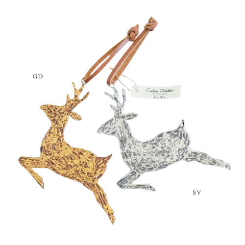 ブリキ オーナメント エンボスレインディア ≪ゴールド / シルバー≫ トナカイ モチーフ アンティーク イ...
