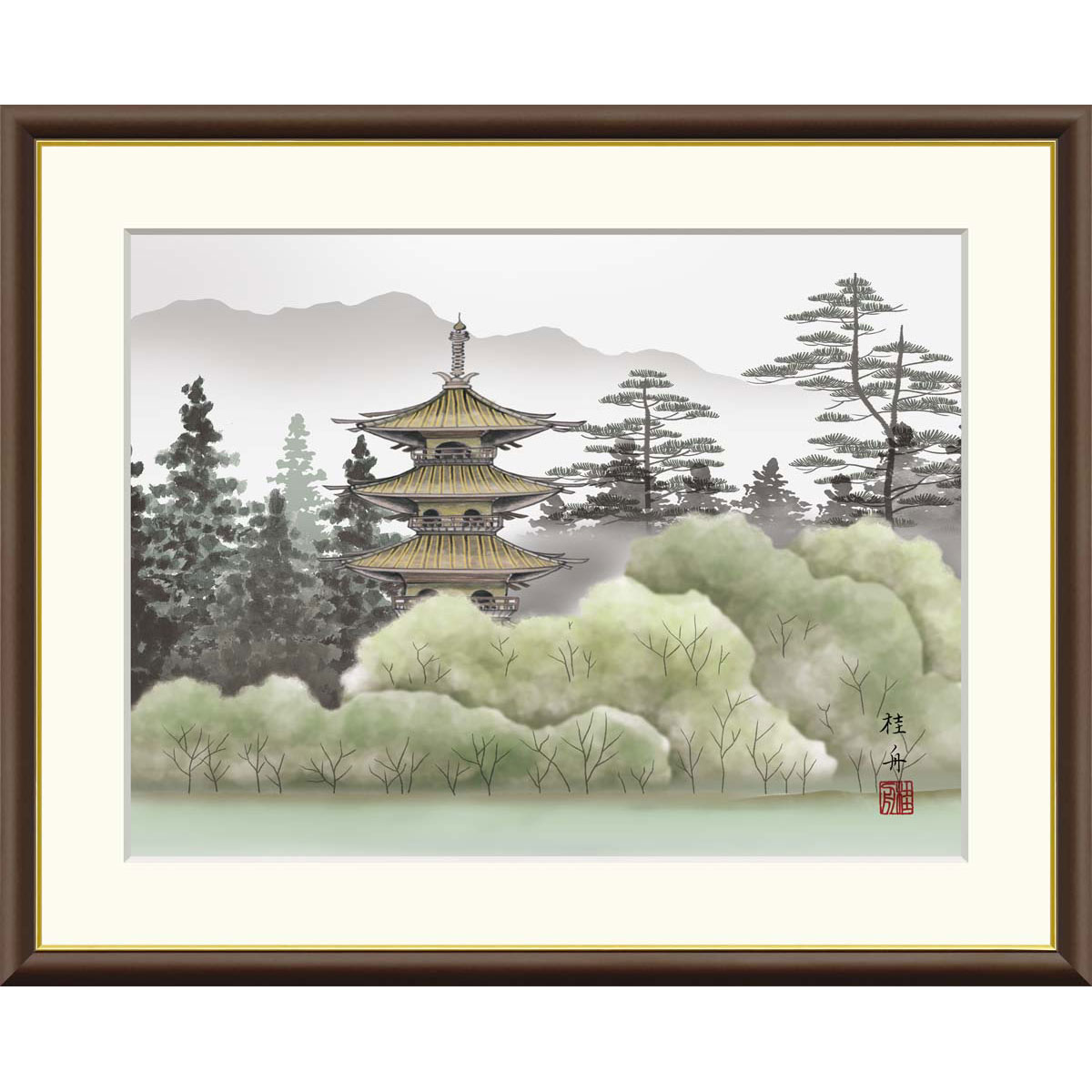 商品の詳細 【山水画】遥かに聳える霊峰に人々は偉大なる天との接点を抱いてきました。 大自然の偉大な力が作り出した壮大なスケール。また優れた山水画には不思議と懐かしさがこみ上げる情景が描かれています。 作家名/ 長江桂舟(師:村内桃幸。伝統に現代感覚を取り入れた画法で評価を集める。三美会会員) 作品名/ 幽山塔景(F8号) 技法/ 高精彩工芸画+手彩 額寸/ 61x49.5(cm) 絵寸/ 45.5×38(cm) 作品の状態...[詳細を見る]