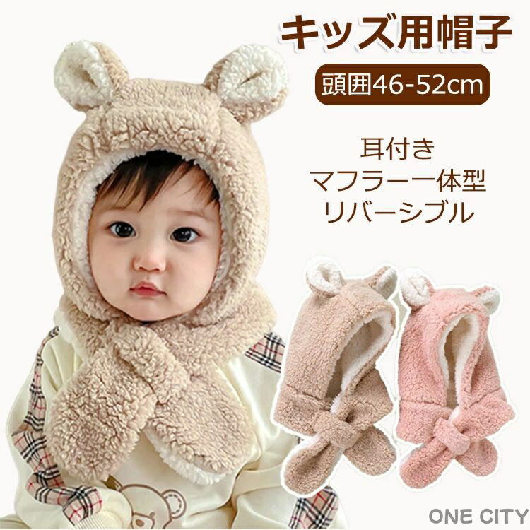 ベビー帽子 くま耳 防寒 赤ちゃん スカーフ マフラー キッズ ボア 幼児 女の子 男の子 秋冬 暖かい 可愛...