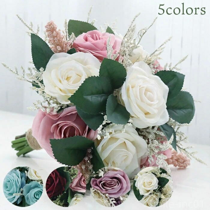 ウェディングブーケ ブライダルブーケ 4色 ローズ 白【ブーケ】ホワイト ウェディングブーケ 造花...