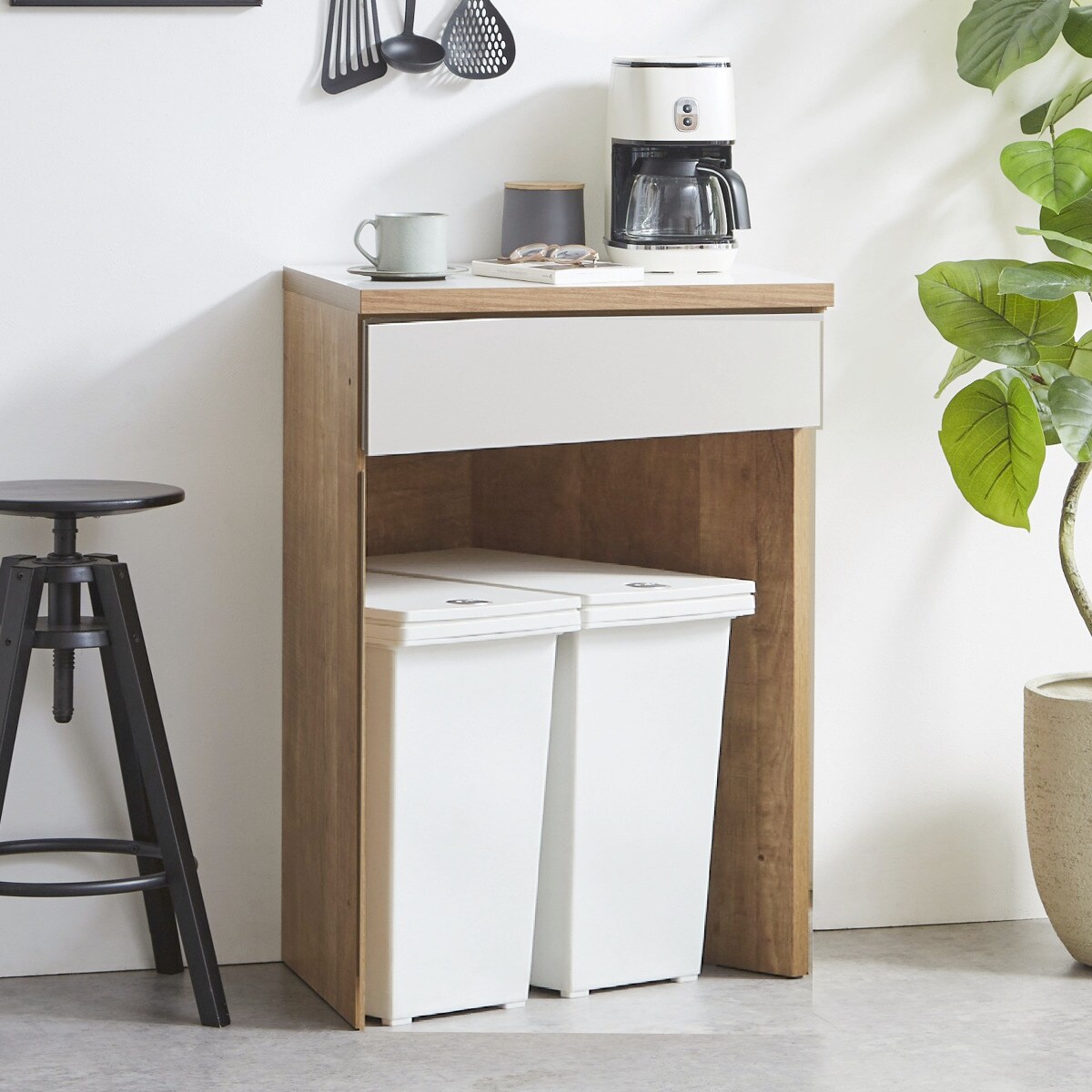 ■商品説明 さりげないツートーンが印象的なキッチンシリーズRegal。コンパクトながらもオープンラックやスライド収納、フラップ扉など豊富な収納を備えた機能的なキッチンカウンターです。キャスター付きで移動も楽々です。■本体サイズ[外寸]幅60×奥行46×高さ80cm■その他サイズ[内寸] (オープン部)幅23×奥行37.5×高さ35cm (可動棚小)幅22.5×奥行36×厚み1.5cm(3.2cmピッチ5穴) (スライド収納部)幅29.5×奥行35×高さ31.5cm (スライ...[詳細を見る]