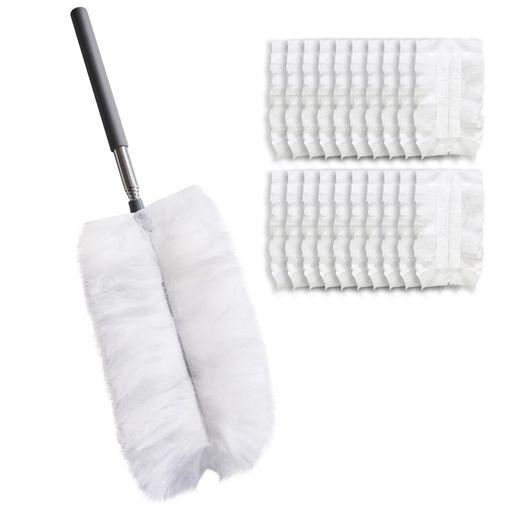 【2in1超極細繊維&シェ二ール】このホコリ取りキットには、1*マイクロファイバーモップヘッド、1*シェ二ールモップヘッドと1*ステンレスポールが含まれています。マイクロファイバーヘッドは、吸着性が強くて、軽く拭いて静電気を吸着できます。髪、糸屑、紙くず、花粉、ハウスダストやホコリ等が一瞬にキャッチして、取り除けます。シェ二ールヘッドは、柔らかくて、任意の表面に擦ったり、傷ついたりすることがありません...[詳細を見る]