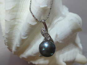 ダイヤモンド3粒をサークルの中で縦にあしらったデザインのペンダント。縦に長く、真珠が胸もとで揺れるこのデザインには大きめサイズの真珠が似合います。ダイヤモンドと真珠の輝きで、胸もとを華やかに演出してくれるデザインです。標準チェーンは、0.28mmのアズキチェーンです。真珠のサイズは10mm。このサイズはタヒチ産黒蝶真珠のポピュラーなサイズです。色はブラック。黒蝶真珠はブラックパールとも呼ばれるため、黒い色...[詳細を見る]