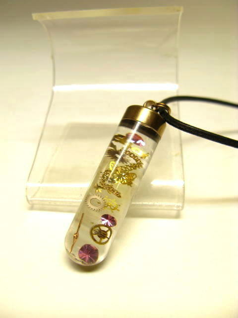 試験管で作ったペンダント 3Dパノラマ、神秘的な空間が広がります。 【試験管ペンダント本体詳細】 スワロフスキー・デコパーツなど楽しくなっちゃうペンダントにしました。 皮ひも付き(ドイツ製):65cm直径1.5mm 頭からすっぽり入る長さ(2色から選択できます) キャップ:ハイグレードステンレスJIS規格SUS305(18-10)チタンコーティング(腐食・錆に強い)日本製 高品質ステンレスは、腕時計のバンドにも使われているとおり...[詳細を見る]