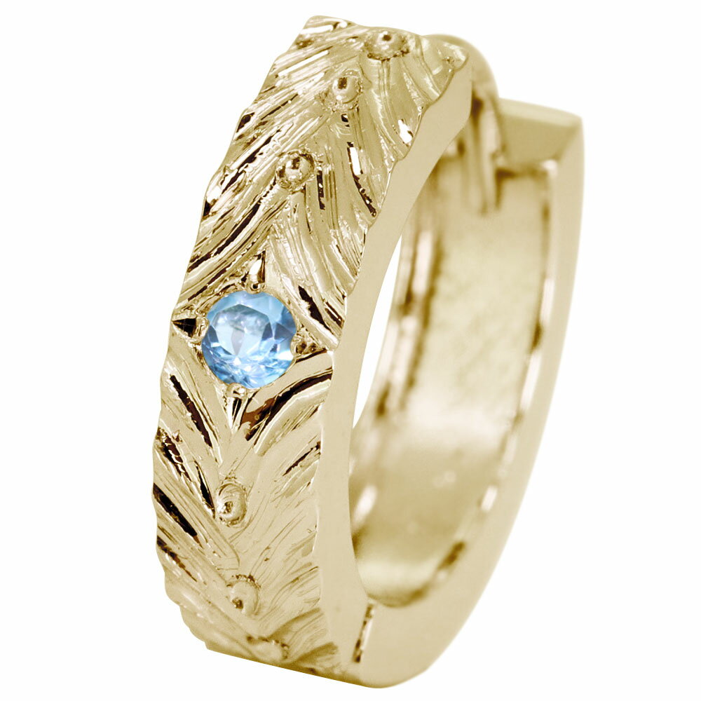 11月誕生石ブルートパーズを使用した10金製の、メンズフープピアスです。 ハワイアンジュエリーとは一味違う洋彫りジュエリー。 職人が一つ一つ丁寧に仕上げたオリジナルのデザインです。 ※【10金カラー3色から】お選び頂けます。 ※【片耳】価格です。両耳1ペアをご希望の場合は、2個ご購入下さい。 本体素材:K10イエローゴールド/K10ロジウムコーティング/K10ピンクゴールド (品質を保証するK10の刻印があります。) 石名:ブ...[詳細を見る]
