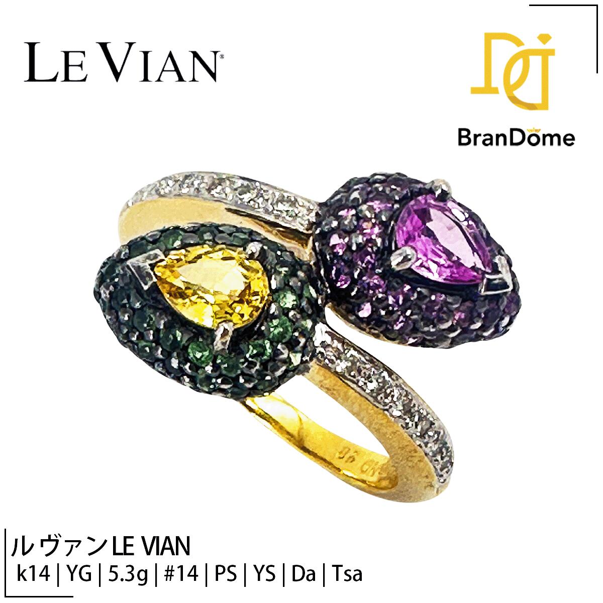 ブランド名ル ヴァン / LE VIAN商品ランクAB材質K14 YG イエローゴールド重量約5.3g仕様#54/約14号付属品日宝鑑別書 宝石ピンクサファイア ct刻印なし / イエローサファイア ct刻印なし / ダイヤモンド ct刻印なし / ツァボライト ct刻印なしコメントル・ヴィアン(Le Vian)は、15世紀ペルシャに起源をもち、王侯貴族も信頼した長い歴史を持つファミリー・ジュエリーメーカーです。現在では、独自の「チョコレートダイヤモンド...[詳細を見る]