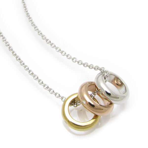 【送料無料】 三つの異なるカラーのリングが連なるシルバーネックレス それぞれのリングはシルバー素材をベースに イエローゴールドやピンクゴールドでコートしてあります 全てのリングには天然ダイヤモンドを一石ずつセット 上品な輝きが放たれています リングはチェーンに通しているだけなので その日の気分やスタイルによって様々に付け替えることが出来ます シンプルにもボリューミーにも楽しめるお得なアイテムです ※こち...[詳細を見る]