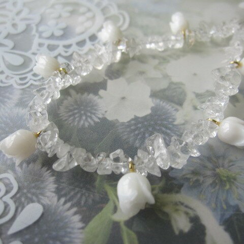 商品説明珊瑚の種類白珊瑚 サイズ・素材薔薇のつぼみ:約7×8ミリ 水晶さざれ:約4.5〜8ミリ 金具:K18 現状サイズ:内径約18センチ (特徴など)純白のバラの蕾をふんだんに使った、爽やかなブレスレットです。 水晶のさざれの透明感と、清らかな白珊瑚が美しさを表現しています。 これからの季節にピッタリの爽やかブレスレット。 おススメです。 備考 *金具込み内径サイズをお選びください。 (サイズにより、薔薇の数が変わる...[詳細を見る]