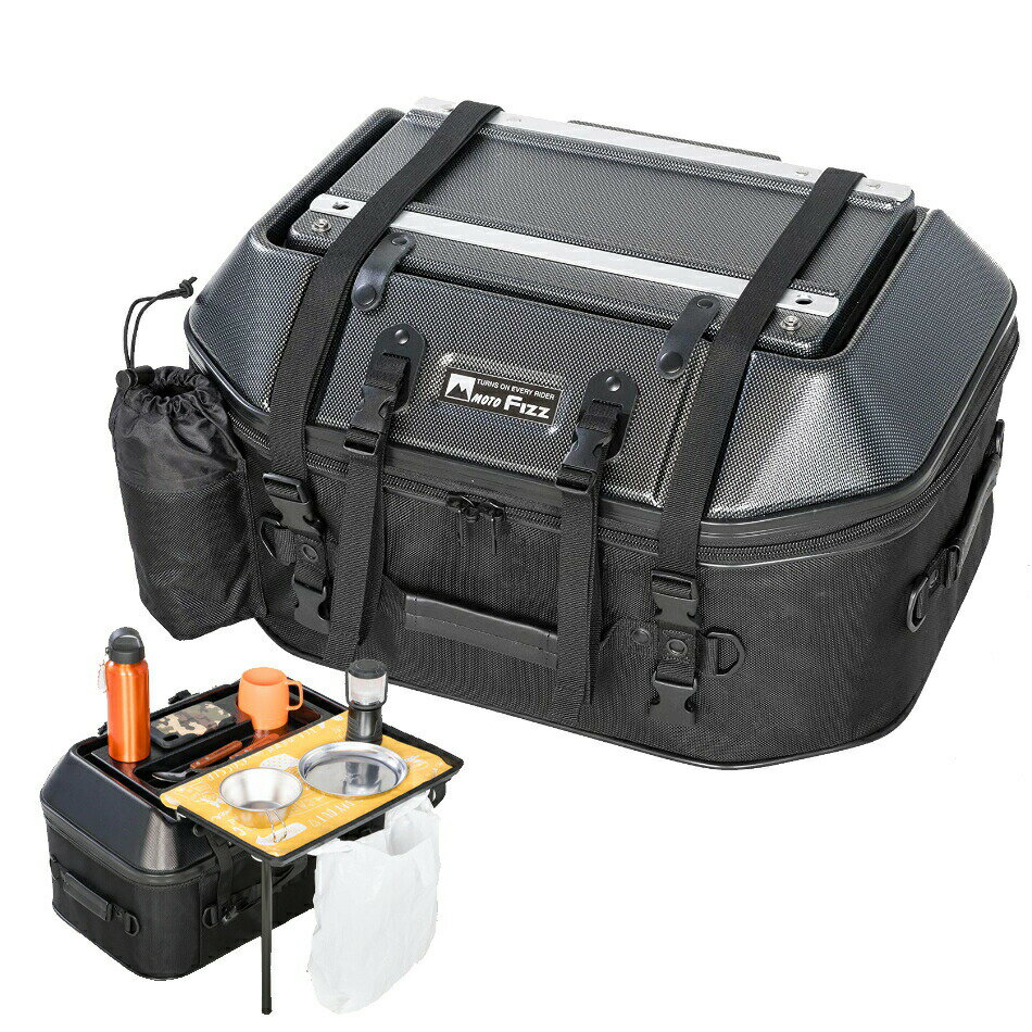 シートバッグがキャンプテーブルに変化する多機能バッグ! ● 組み立て簡単!素早く設置!すぐにキャンプ! ● かさばるテーブルが荷物として一つ減りパッキングがラクラク。 ● キャンプ用品一式収納可能な、45Lの大容量。 ● ツーリングネットV等を使用して、テント、マットのバッグ上部積載が可能。 ■ 色・材質 カラー:ブラック ■ 素材 ポリカーボネイト、1680Dナイロン ■ サイズ 300(H)×540(W)×370(D)mm ■ 容量: 45L ■ 部品構...[詳細を見る]