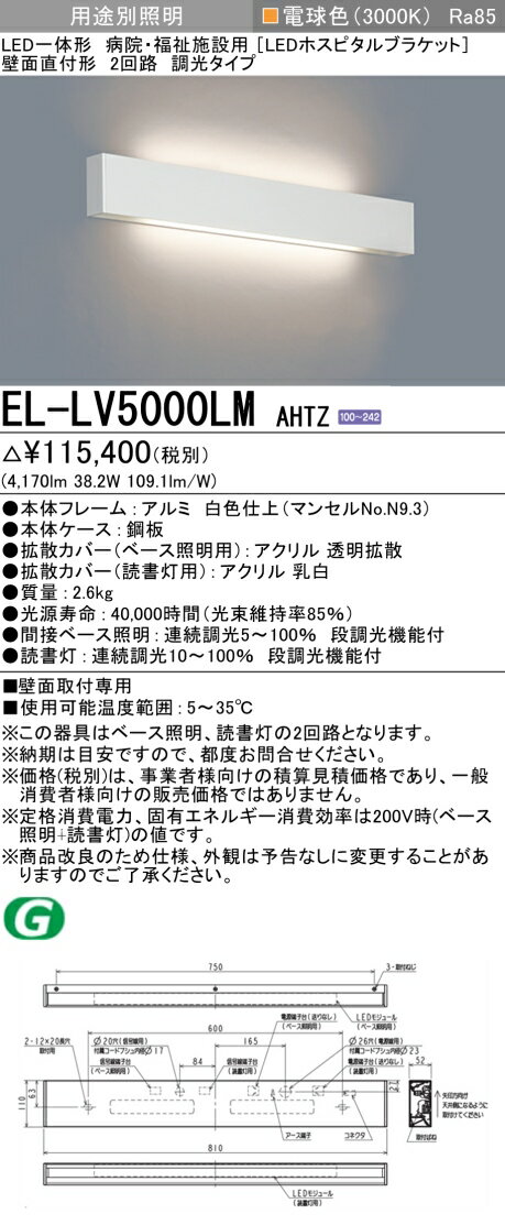 昼白色(5000K)Ra83100〜242V光束:800lm消費電力:5.8W器具本体:EL-LH-EL20711ライトユニット:EL-LUE20856N AHTN本体:ステンレス 白色仕上ライトユニットカバー:ポリカーボネート樹脂 乳白色ライトユニット:LED内蔵・電源ユニット内蔵質量:0.5kg(器具本体のみ)適合部品(別売):ねじ穴キャップEL-XF001口出し線付IP65(ライトユニットのみ)段調光機能(100%〜70%)※こちらの商品は受注生産品となります。【LED照明】 ...[詳細を見る]