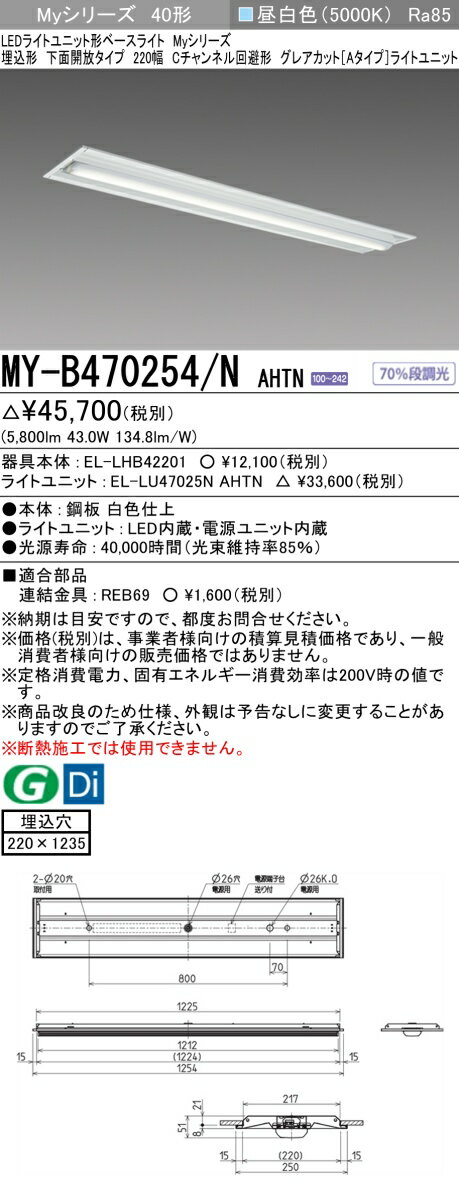 メーカー: MITSUBISHI / 三菱電機照明 シリーズ名:LEDライトユニット形ベースライト Myシリーズ【組み合わせ品番】 本体:EL-LHV22301 ライトユニット:EL-LU20823W AHTN 【本体】 質量:0.7kg 本体:鋼板 白色仕上 プルスイッチ付 【ライトバー】 屋内用 周波数:50/60Hz 電圧:100V-242V 定格:固定出力形(段調光機能付) ライトユニット光束:720lm 消費電力:5.8W 固定エネルギー消費効率:124.1lm/W 光源色:白色(40...[詳細を見る]