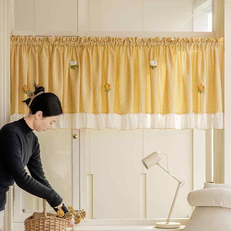 ローズビュヴァールカラーの可愛いミニ薔薇の刺繍が たくさんちりばめられたロマンチックなカフェカーテン ベースのチュールレースはホワイトです 適度に光を通すので、お部屋も暗くなりません 優しい雰囲気で窓辺を飾ってみてはいかかでしょうか? 窓辺の目隠しはもちろん オープンシェルフなどの収納の目隠しとしても 美しい刺繍が、やんわりと人目をブロックしてくれます ■素 材:ポリエステル100% ■サイズ:約 横幅 120cm...[詳細を見る]