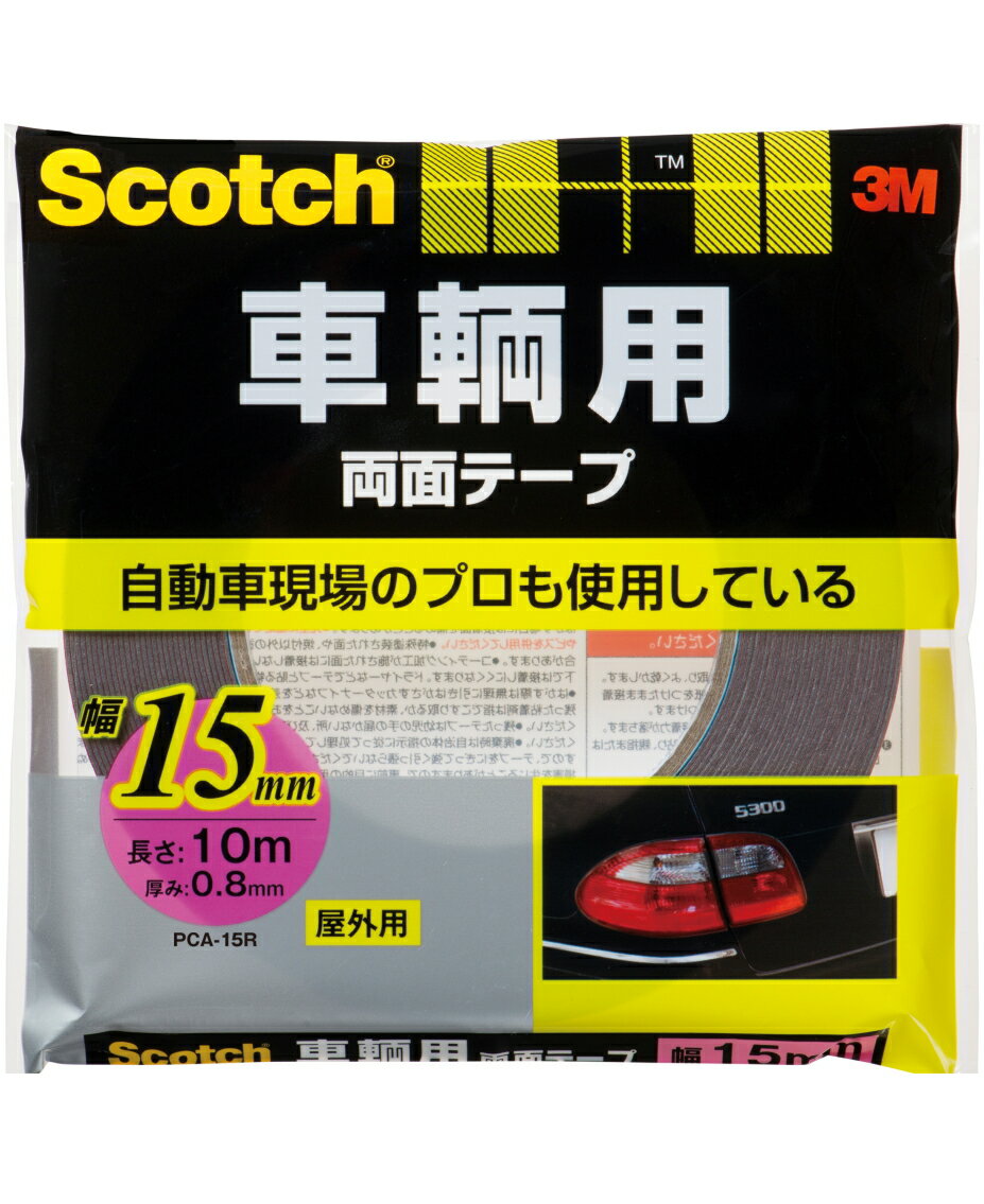 《品番》PCA-15R 《サイズ》幅15mm×長さ10m×厚み0.8mm 《特長》 ●自動車現場のプロも使用している両面テープです。 ●基材が柔らかく、初期接着に優れています。 ●耐候性・耐油性に優れ、長時間高い接着力を持続します。 ●テープ色:グレー ●屋外(車外)用 《接着できる素材》 金属(しんちゅう・アルミ・ステンレスなど)、ABS樹脂、ポリカーボネイト、木 《接着出来ない素材と場所》 軟質塩化ビニール、ポリプロピレン、ポリ...[詳細を見る]