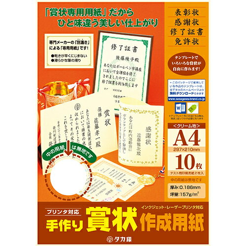 (まとめ)タカ印 手作り賞状作成用紙A4判 クリーム 10枚(×20セット)