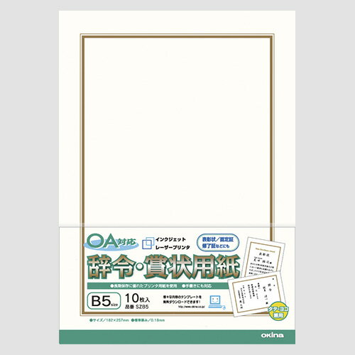 オキナ OA対応辞令賞状用紙 SZB5 SZB5