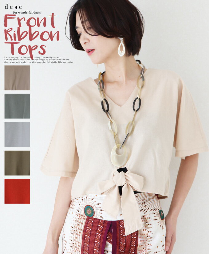 ※お使いのPCモニターの違いや照明により、実物との色味に 多少の差異がある場合がございます。 >サイズについて< ◆サイズ◆ ワンサイズ(F) 着丈:48cm 身幅:53cm 裄丈:37cm コットン100% ◆モデル身長◆ 173cm 【検索ワード】トップス 半袖 コットン フロントリボン ゆったり レディース ファッション 大人カジュアル 大人ナチュラル「フロントリボンがアクセント 大人可愛いゆったり半袖トップス」オレンジ ベージュ カー...[詳細を見る]
