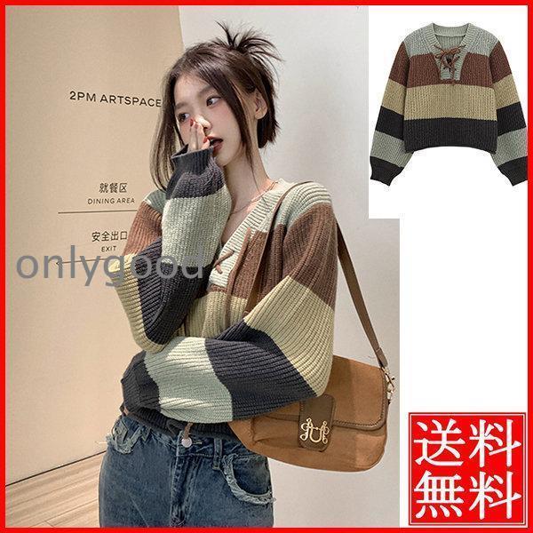 ニットセーター レディース トップス 長袖 配色切替え ドルマンスリーブ Vネック ニット ゆったり カッ...