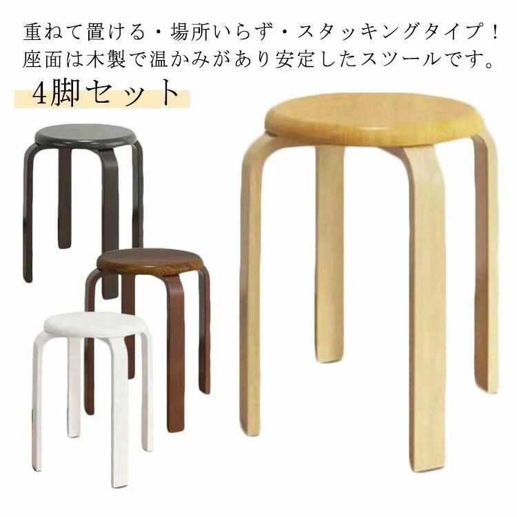 ナチュラル 曲脚 4脚セット 椅子 丸椅子 イス 重ねる 高さ約45cm 直径30cm 木製 ブラウン ホワイト スタ...