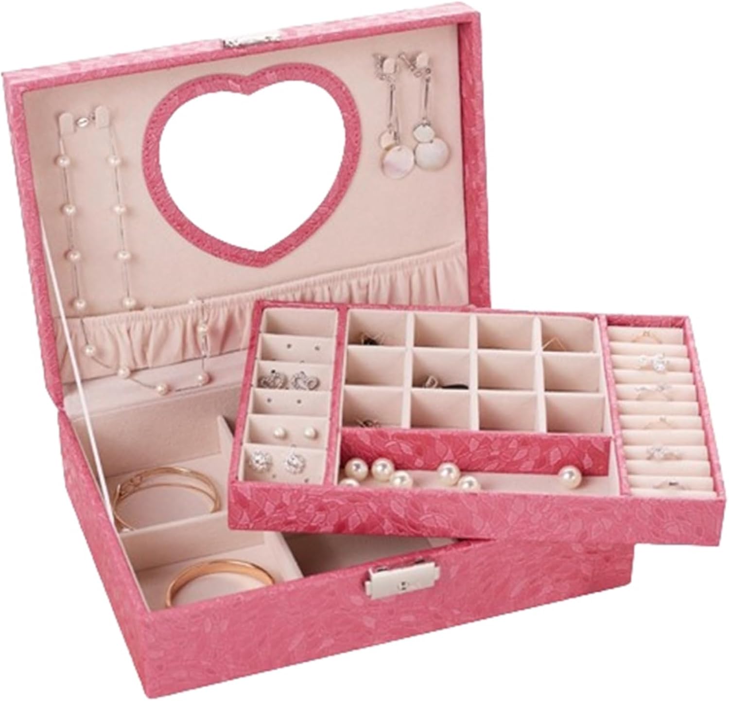 ◆◇◆人気の秘密◆◇◆ 【サイズ】約10*10*3cm;素材:HIPS+TPR 【小型で収納力抜群】このジュエリーケースにはサイズの異なる仕切りがあり、ピアス、ネックレス、リングなどを種類ごとに分けて収納できます。 【持ち運び楽々】小型で持ち運び便利なジュエリーケースです。簡単にカバンやスーツケースにおかれて外出時は便利です。 【デザイン】シンプルで清潔感あるデザイン、鏡が付いて使うのが便利です。 【プレゼントとし...[詳細を見る]