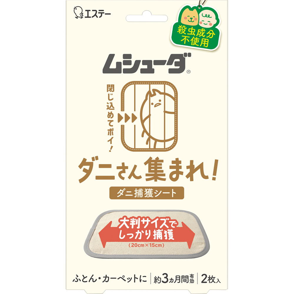 製品の特徴 ●ダニが気になる場所に置くだけで、簡単ダニ対策! ●殺虫成分不使用。食品成分でダニを誘引します。 ●子供やペットのいるご家庭でもご使用いただけます。 ●誘引剤でダニを引き寄せ、大判サイズの強力な両面粘着シートでダニをしっかり捕獲。 ※本品はイエダニ・マダニを対象としたものではありません。 ●ダニのフンや死骸もまとめて、シートごと捨てることができます。 ●使いやすい個別包装タイプです。 ※パッケージ...[詳細を見る]