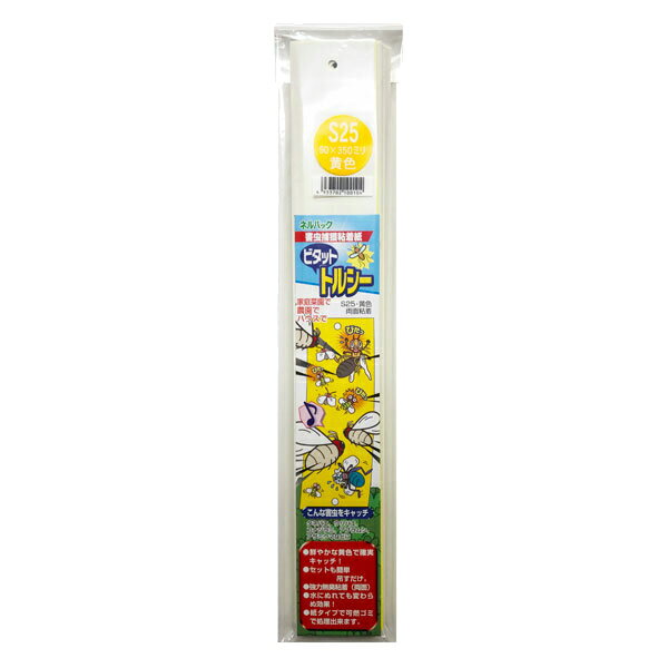 特徴コナジラミ類、アザミウマ類、ハエ類が好む黄色でおびきよせ、強力な粘着力で捕獲します。農薬を使用していないので抵抗性のある虫も捕獲できます。ワイヤーなどに吊すだけで簡単に設置できます。剥離紙タイプなので、粘着板製品に比べて手が汚れません。紙製品なので折り曲げ加工が自由にできます。使用後は可燃ゴミとして処分できます(自治体の分別基準に従って下さい)。使用例トルシー本体の穴にワイヤーをとおす、ステ...[詳細を見る]