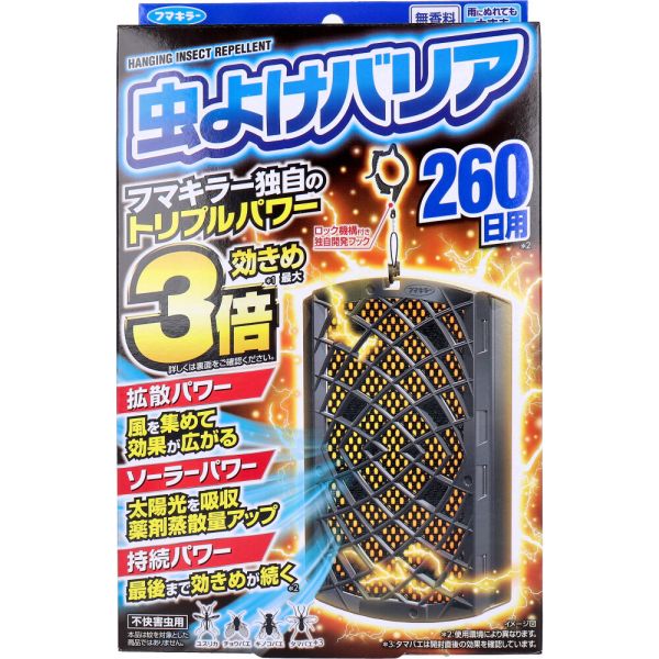 ギフトサービスについてフマキラー株式会社個装サイズ:150X239X36mm個装重量:約169g内容量:1個入ケースサイズ:47.6X25.7X27.6cmケース重量:約4.5kg製造国:日本【発売元:フマキラー株式会社】【不快害虫用】【有効成分等】ピレスロイド(トランスフルトリン)、酸化防止剤、紫外線吸収剤、溶剤、他1成分【適用害虫】ユスリカ、チョウバエ、キノコバエ、タマバエ※タマバエは開封直後の効果を確認しています。【使用の目安】ベラン...[詳細を見る]