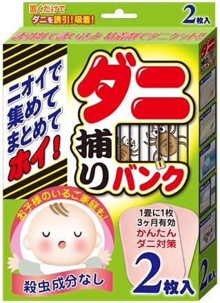 商品説明 ●ダニの死骸の飛散防止 誘引剤に誘われシートの中に入ったダニは、粘着部分に吸着されます。 それにより、ハウスダストの元となる死骸や糞の飛散を防ぎます。 ●殺虫剤は不使用 誘引剤・粘着剤には殺虫成分を使用していません。 小さなお子様やペットのいるご家庭でもお使いいただけます。 ●使用目安は約3ヶ月 1畳ほどの広さに対し、シート1枚を置いてください(目安)。 3ヶ月後にシートごと家庭ゴミとして処分してく...[詳細を見る]