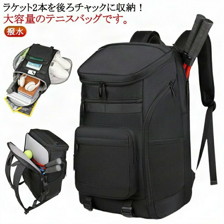 ラケット2本を後ろチャックに収納!大容量のテニスバッグです。旅行カバンとしても使える大容量な収納力!表地にはっ水加工を施しています。背面のポケットにテニスラケット2本まで収納可能で、家族や友達でテニスを楽しむにはぴったりです。本体内側にはクッション性のあるPC/タブレットポケットを搭載。サイドにシューズ収納ポケットと防水ポケットを搭載。小物を収納できるフロントポケット3つ付き。通勤・通学にも、旅行にも...[詳細を見る]