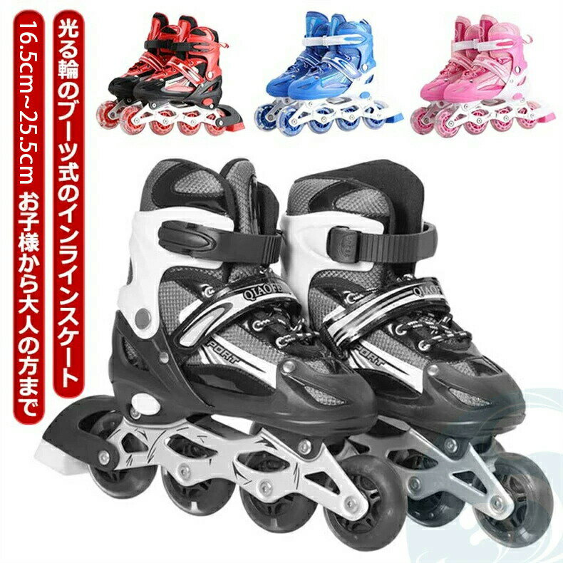 【 16.5 〜 26.5cm お子様から大人の方まで 】【光る輪の式のインライン】式だから足にピッタリとフィットして滑りやすくトが固定タイプなので初めての方でも乗りやすい軽量でアルミフレーム採用の耐久性のあるインライン。は通気性の良い素材で蒸れにくい。調整可能で厚みのあるは痛い靴擦れや衝撃から足を保護します。また、プッシュ式なので工具を使わずに指で簡単に調整が可能です。お子様に大人気のインライン!お誕生日等...[詳細を見る]