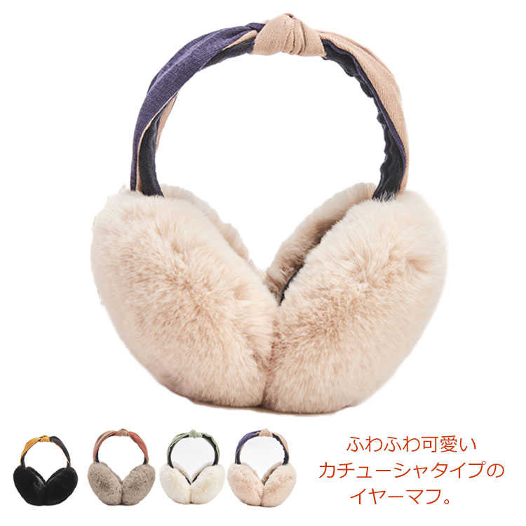 2イヤーマフ レディース 猫耳 うさぎ フェイクファー 裏起毛 防寒 ヘアバンド かわいい 秋冬 紫 黒 白 緑 ベージュ[詳細を見る]
