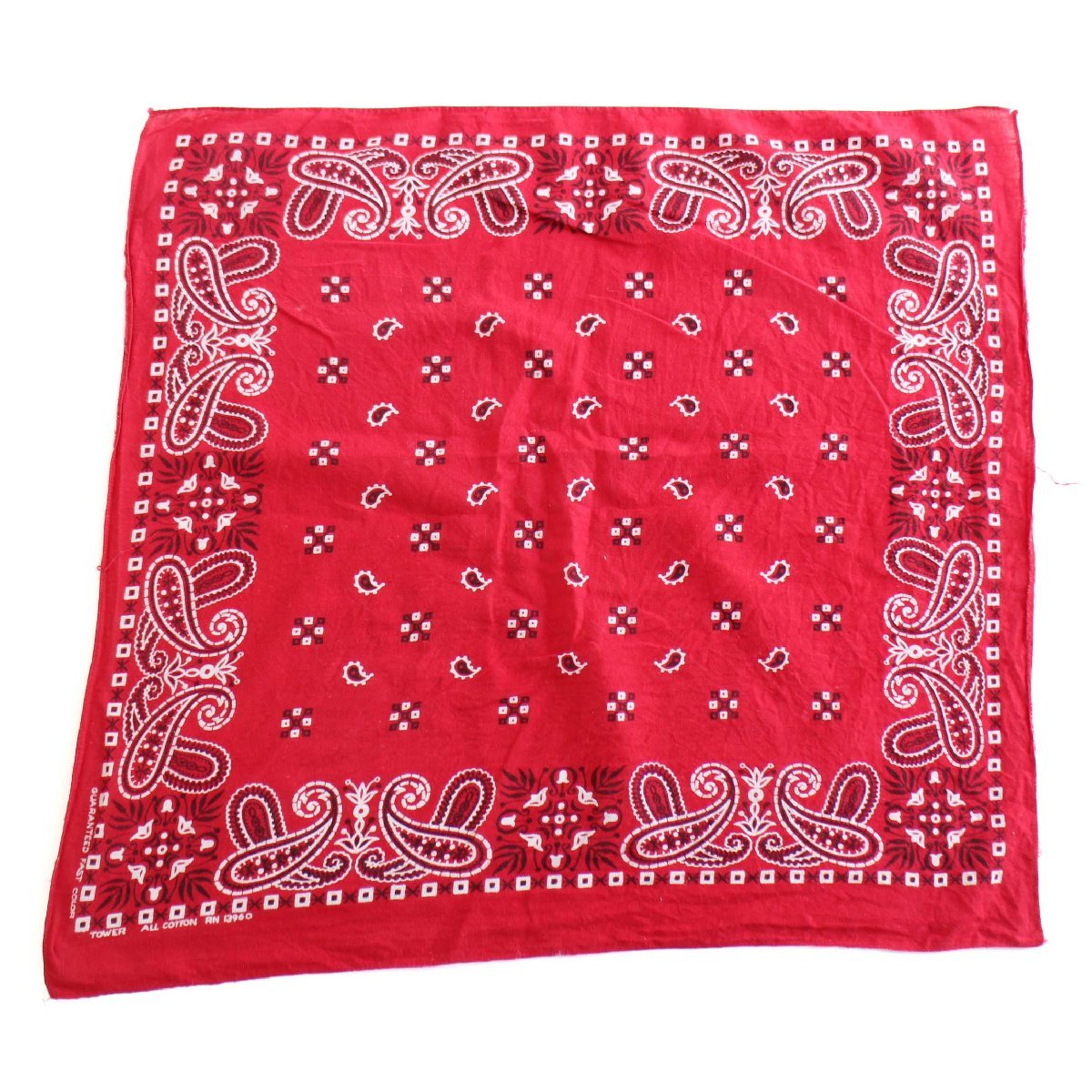 商品詳細 60s〜【TOWER】のバンダナです。GUARANTEED FAST COLOR、RN13960一辺に耳付きカラー:赤素材:ALL COTTON大きさ:約54cm×50.5cm多少の誤差はご了承ください。コンディション:使用感があり、1つの角に少しのほつれ、1つの角付近に1つのピンホールがあります。目立つダメージや酷い汚れはなく、問題なくお使いいただける程度です。★クリックポストでも発送可能です。 注意事項 ・商品の状態は注意深くチェックして記載...[詳細を見る]
