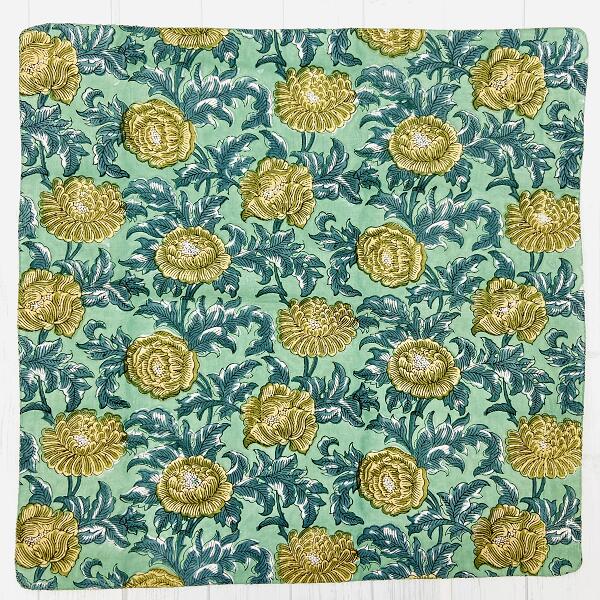 バンダナ インド綿100% ブロックプリント ビッグフラワー ボタニカル柄 アジアン エスニック 北欧 カン...