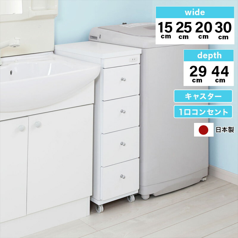 <商品紹介>・わずかなすき間もムダなく活用 わずかなすき間にもぴったりはまるすき間ワゴンは、幅15cm・20cm・25cm・30cmの4サイズ、奥行29cm・44cmの2タイプの計8種類でのご用意。 おうちのすき間に合わせてお選びいただけます。・お手入れラクラク 天板・前板には水や汚れに強いポリエステル合板を使用しているため、お手入れが簡単です。 水周りでも安心してご使用できます。・1口コンセント付き 前板には家電を使用...[詳細を見る]