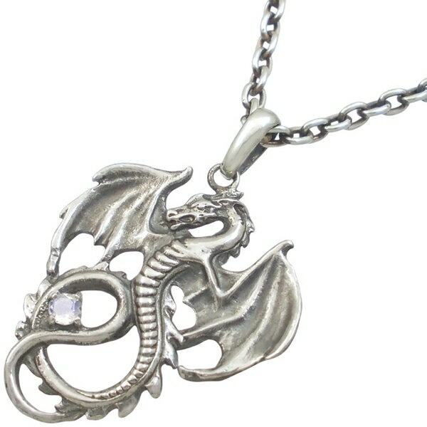 (6月)ブルームーンストーン フライング ドラゴン シルバーペンダントトップ 誕生石
