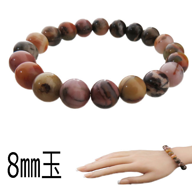 商品情報 素材 クレージーアゲート 縞瑪瑙 しまめのう (シリコンゴム使用) 形状 直径/約8mm (製造工程の都合上、若干の誤差があります。) 注意事項 【素材の特性について】 ◆色合い、色の濃淡、模様などが掲載画像と異なる場合がございます。 ◆傷、クラック、内包物を有する場合がございます。 【ブレスサイズについて】 ◆サイズは、ビーズの大きさと個数の関係により若干の誤差が生じます。 ◆サイズを合わせるため、ビーズ...[詳細を見る]
