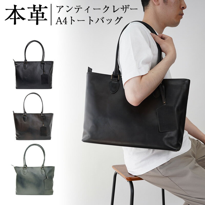 【アンティークレザートートバッグ】 ・艶と独特なムラ感のある色調、しっとりとした風合いが特徴のアンティークレザーを使用しています。そのためひとつとして同じものがない、すべてが一点ものです。 ・ノートPCや資料を持ち運べる収納力。通学・通勤・ビジネスシーンにもおすすめです。 ・カバン外側に同素材で仕上げたシンプルなパスケースを付属。 ・撥水加工を施しているので、屋外での使用でも安心です。 ※撥水効果は経...[詳細を見る]